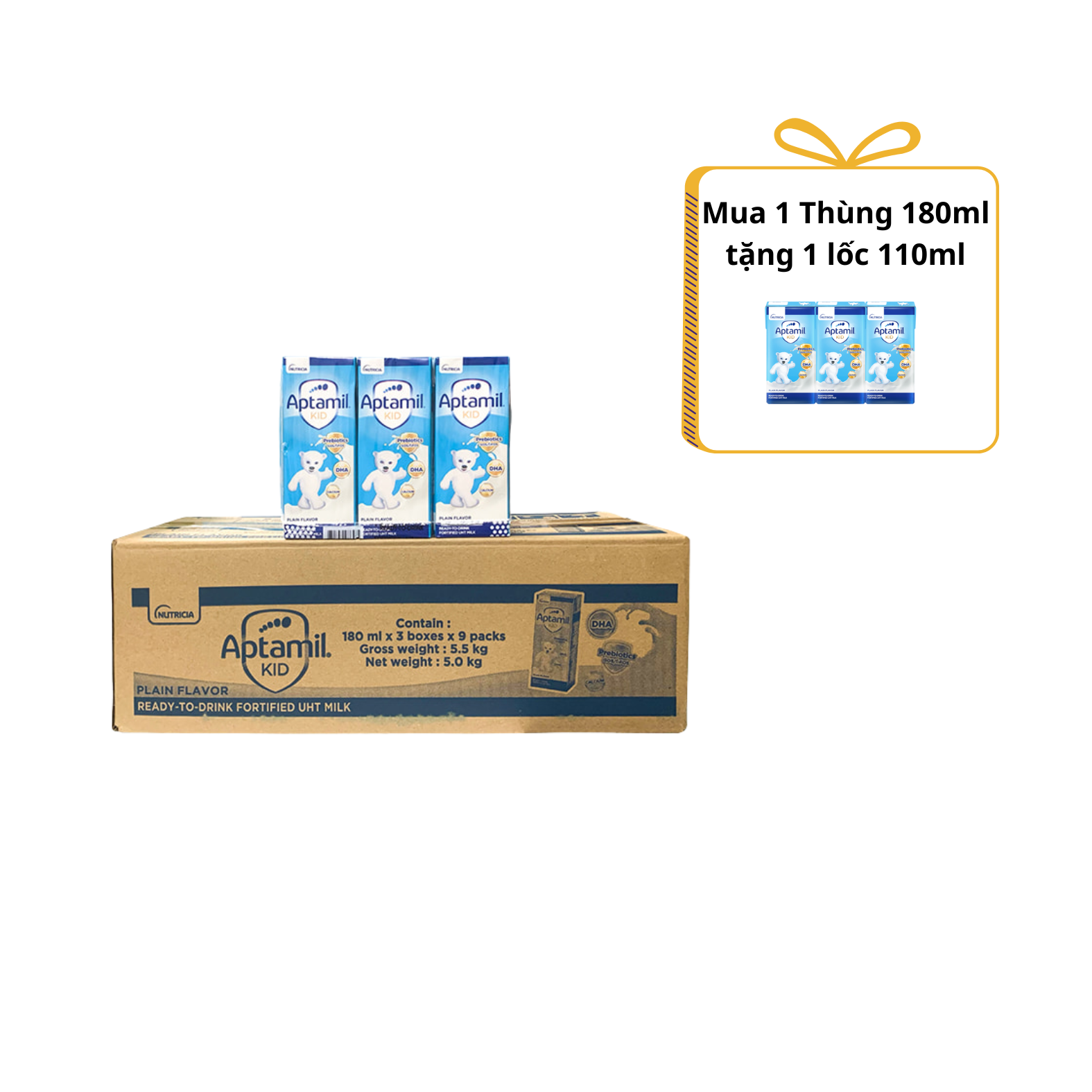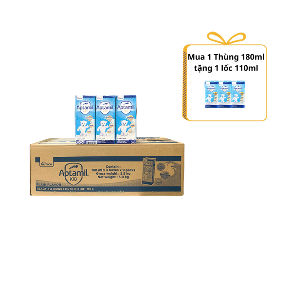 Sữa SBPS Aptamil Kid 180ml cho bé trên 1 tuổi (lốc 3 hộp, thùng 9 lốc)