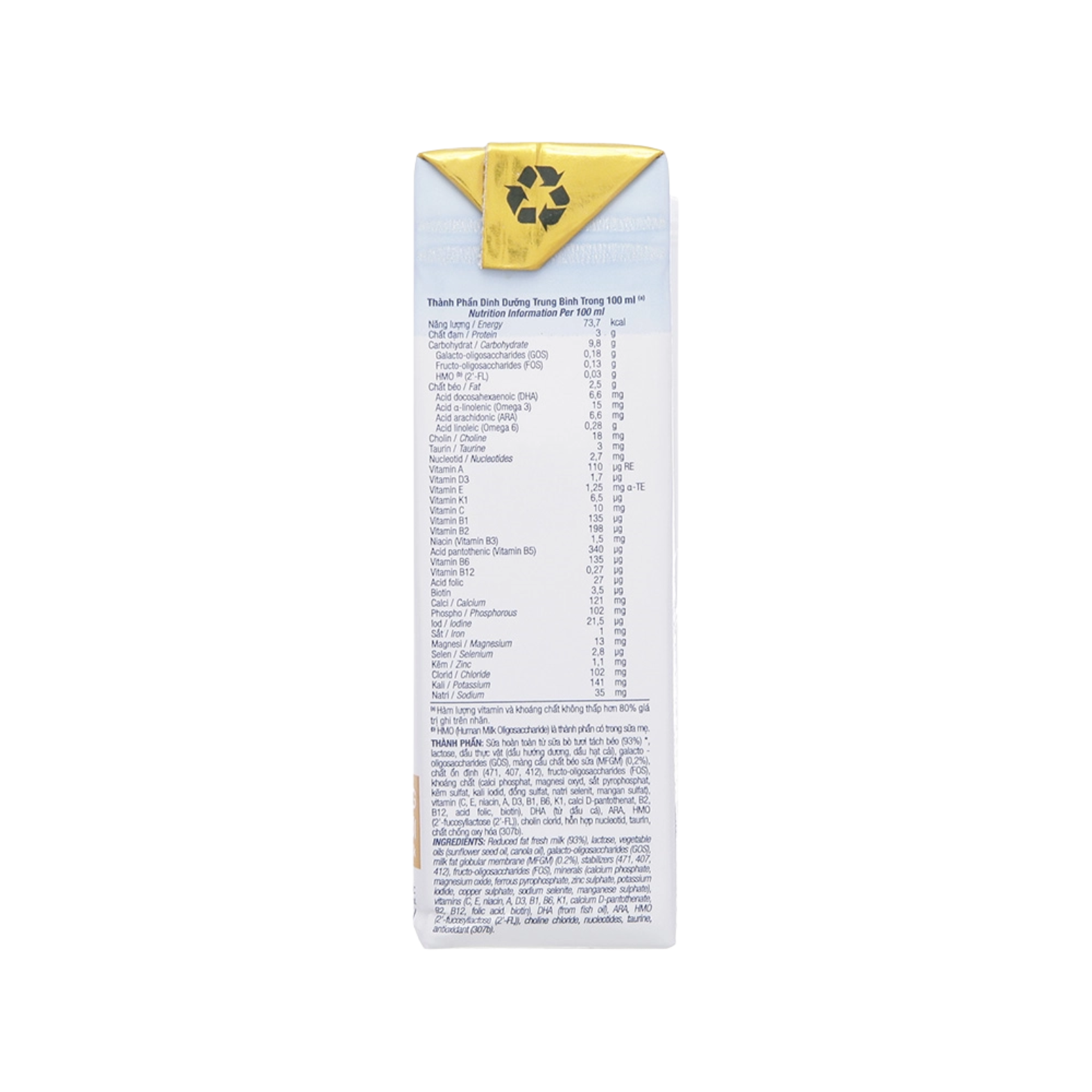 | Ghi chú | (a) Hàm lượng vitamin và khoáng chất không thấp hơn 80% giá trị ghi trên nhãn. (b) HMO (Human Milk Oligosaccharide) là thành phần có trong sữa mẹ. Sản phẩm có chứa sữa, dầu cá và đậu nành | ||