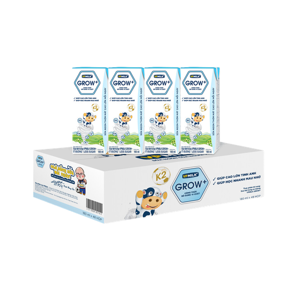 Sữa tiệt trùng VPMilk Grow+ là sản phẩm sữa dành cho bé từ 1 tuổi trở lên, hỗ trợ quá trình phát triển toàn diện cả về thể chất lẫn trí tuệ. Được nghiên cứu và sản xuất với công thức tối ưu, VPMilk Grow+ cung cấp nguồn dưỡng chất thiết yếu giúp bé cao lớn, thông minh và khỏe mạnh. Đây là sản phẩm dinh dưỡng đáng tin cậy và được Huấn luyện viên Park Hang Seo khuyên dùng mỗi ngày.