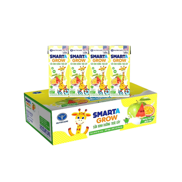THÙNG Sữa dinh dưỡng trái cây Nutricare Smarta Grow hương trái cây nhiệt đới 180ml (12 lốc)