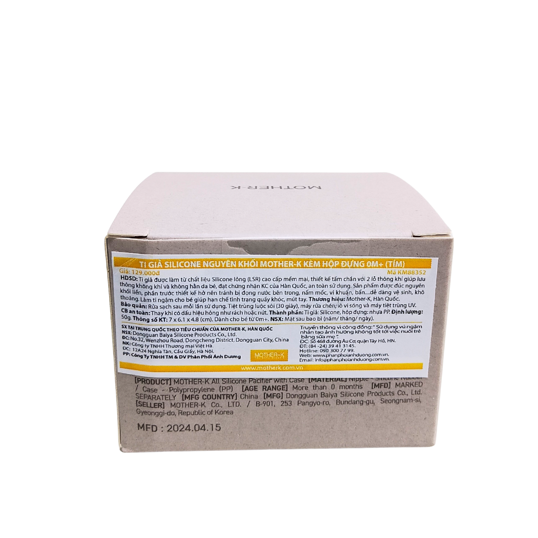 Ty giả Silicone nguyên khối Mother-K kèm hộp đựng 0m+ tím