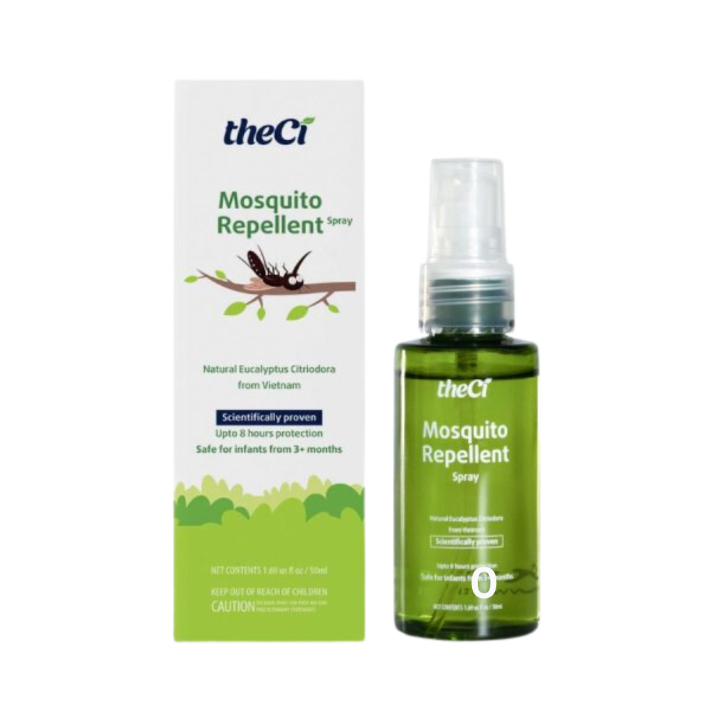 Xịt Muỗi theCi Cho Bé Mosquito Repellent Spray Đuổi Muỗi Ngăn Côn Trùng, An Toàn Cho Bé 50ml với thành phần chính là Tinh Dầu Bạch Đàn Chanh chứa hoạt chất PMD (hay Citriodiol) với hàm lượng cao nhất thị trường lên đến 64% mang lại tác dụng: